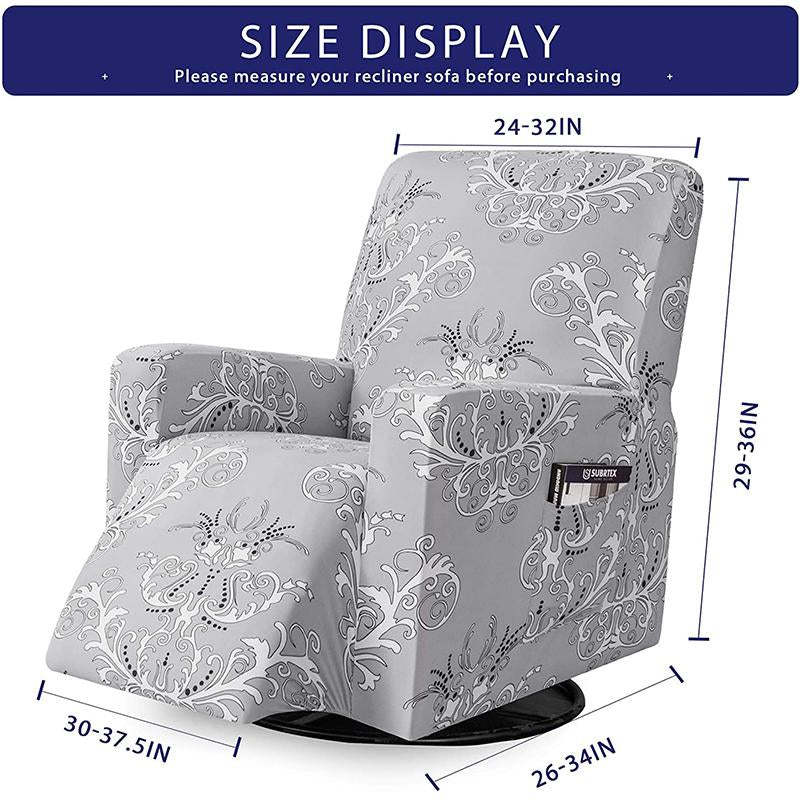 FITS MOST FURNITURE: Our slipcovers are one-size-fits-most: Best fits recliners around 30-38 inches wide (outside arm to outside arm, straight across), 28-38 inches tall (unreclined).